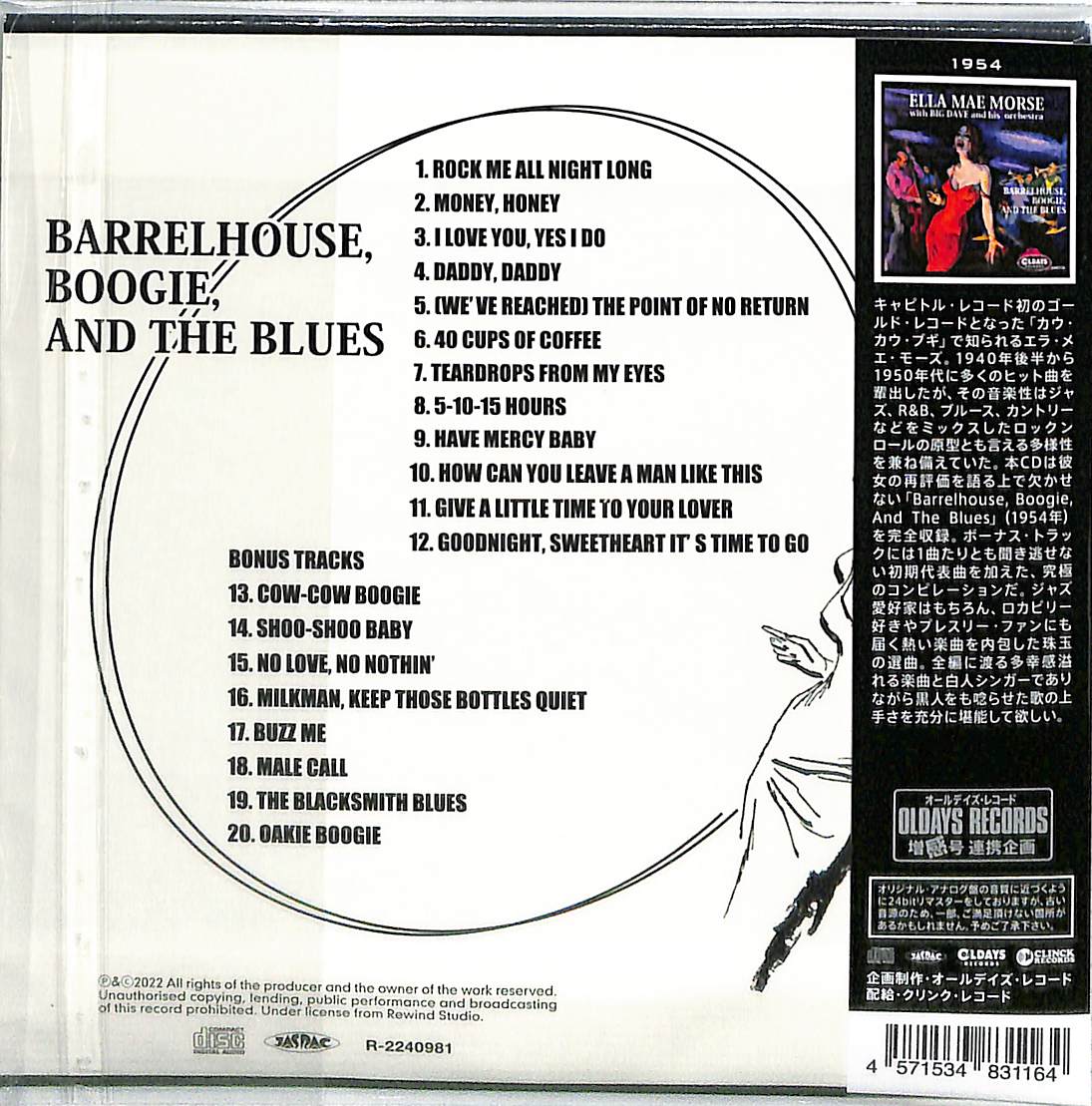 キャピトル・レコード初のゴールド・レコードとなった「カウ・カウ・ブギ」で知られるエラ・メエ・モース。1940年後半から1950年代に多くのヒット曲を輩出したが、その音楽性はジャズ、R&B、ブルース、カントリーなどをミックスしたロックンロールの原型とも言える多様性を兼ね備えていた。本CDは彼女の再評価を語る上で欠かせない「Barrelhouse, Boogie, And The Blues」(1954年)を完全収録。ボーナス・トラックには1曲たりとも聞き逃せない初期代表曲を加えた、究極のコンピレーションだ。